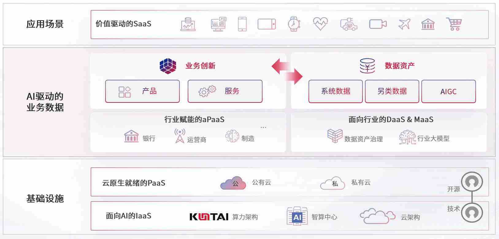数字时代,,围绕企业数字化转型的关键要素,,,z6com尊龙数码开创性的提出数云融合战略和技术体系框架,,着力在云原生、、、、数字原生、、、、AI原生和信创产业上架构产品和服务能力,,,为处在不同数字化转型阶段的快消零售、、汽车、、、、金融、、医疗、、政企、、、教育、、、运营商等行业客户提供泛在的敏捷IT能力和融合的数据驱动能力,,构建跨界融合创新的数字业务场景和新业务模式,,,助力企业级客户建立面向未来的核心能力和竞争优势,,全面推动社会的数字化、、智能化转型升级。。