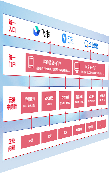 对协作平台提供支持服务,,支持企业应用与协作平台对接,,包含组织同步、、消息集成、、、待办集成等。。。。支持目前主流的协作平台:钉钉、、企微和飞书。。
